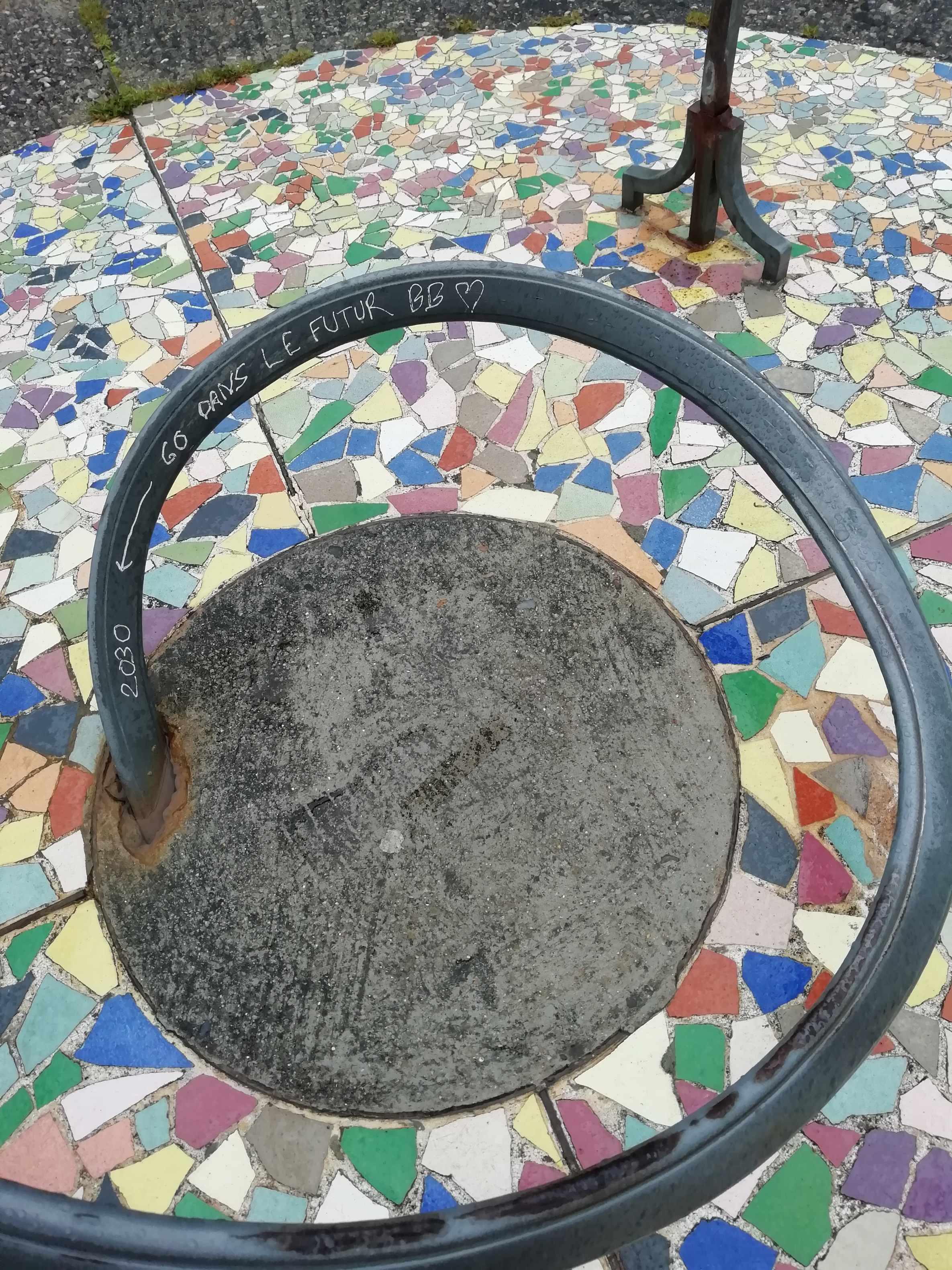 Les tables d'orientation en acier laminé type « main courante » offrent un recours possible que l'on tient pour se préserver, se rassurer, ou que l'on peut lâcher selon son degré de sûreté. Mais parallèlement à cette filiation passéiste, les lignes sûres et solides des tables d'orientation permettent de s'assurer un devenir, elles évoquent à la fois, la nécessité d'un soutien, d'un point d'appui, mais aussi l'émancipation future, la progression et l'orientation vers de nouveaux horizons.