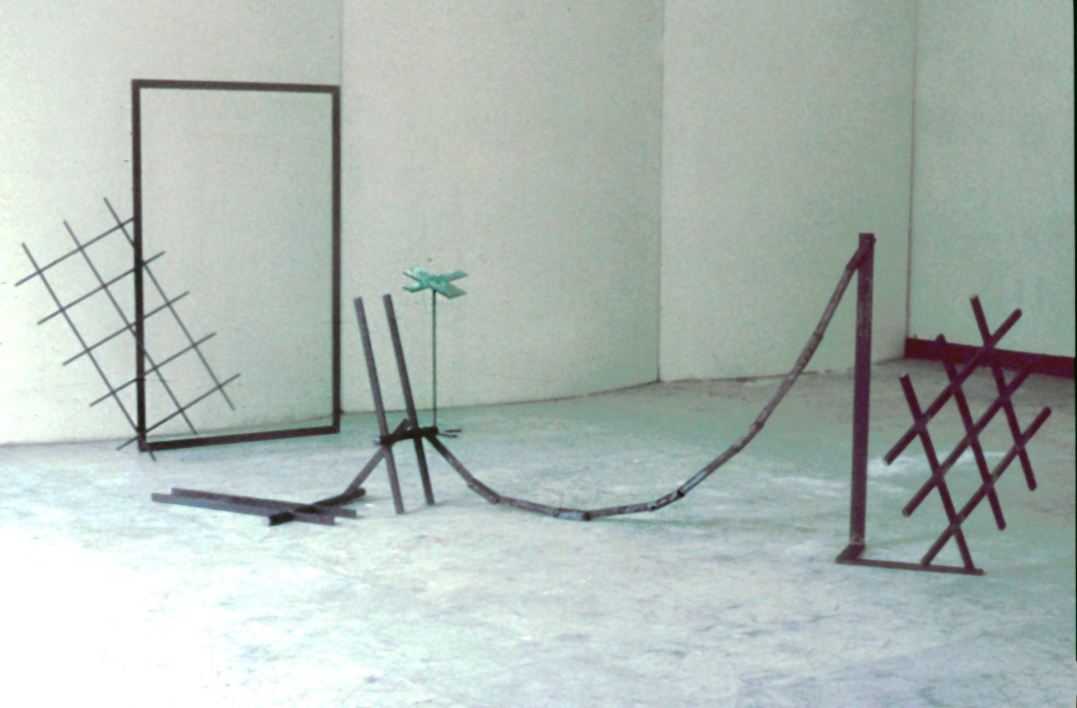 Diploma Show de l’École de Hornsey où l’artiste a passé cinq ans en tout. Peter Briggs a présenté deux ensembles, l’un free standing, l’autre appuyé contre un mur. Il s’agit d’associations ponctuelles d’éléments réunis selon les espaces disponibles, éléments crées individuellement.