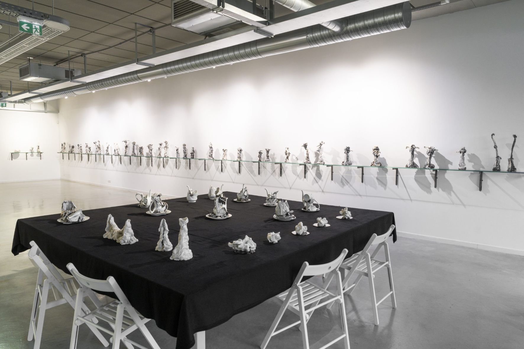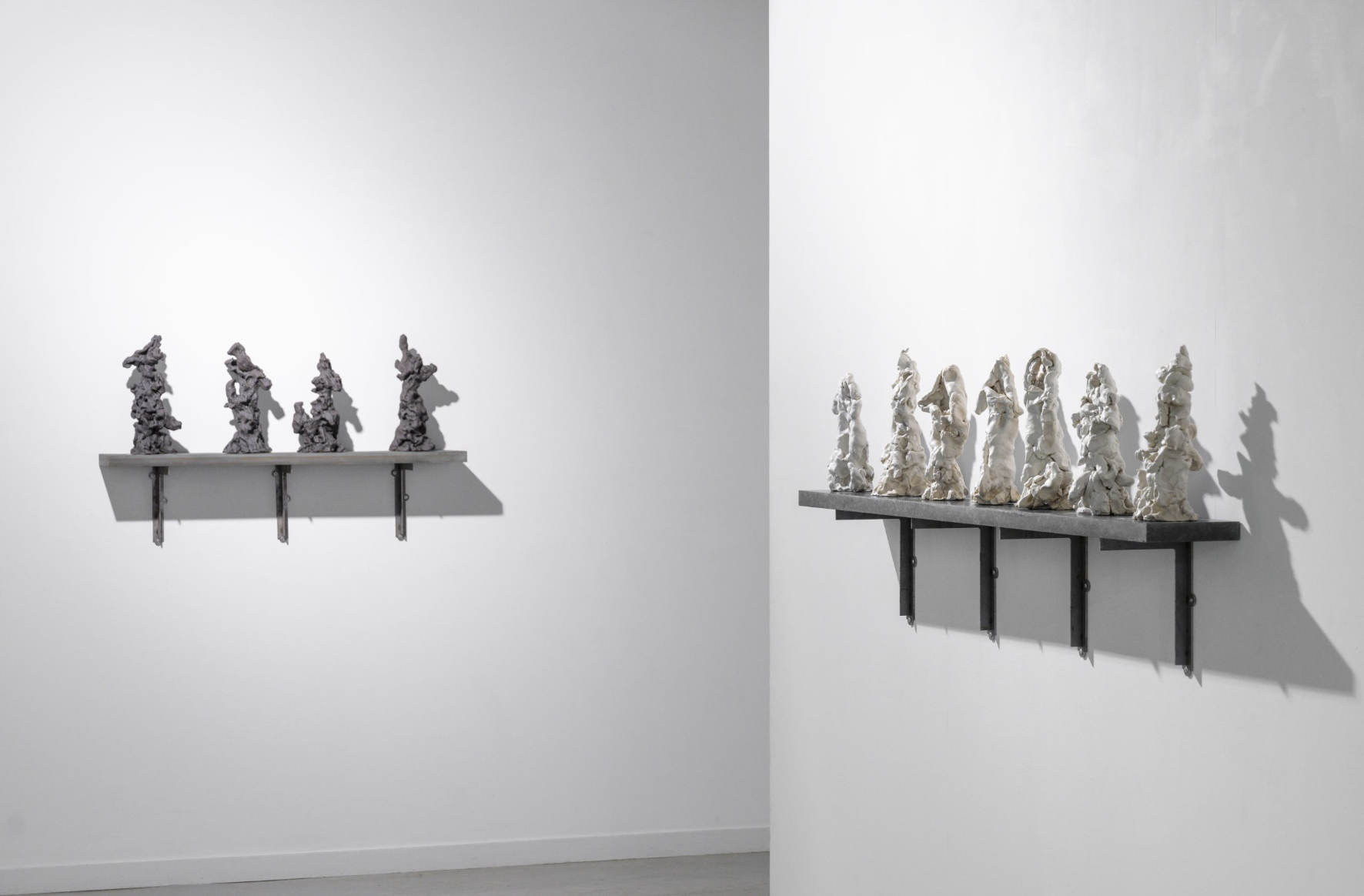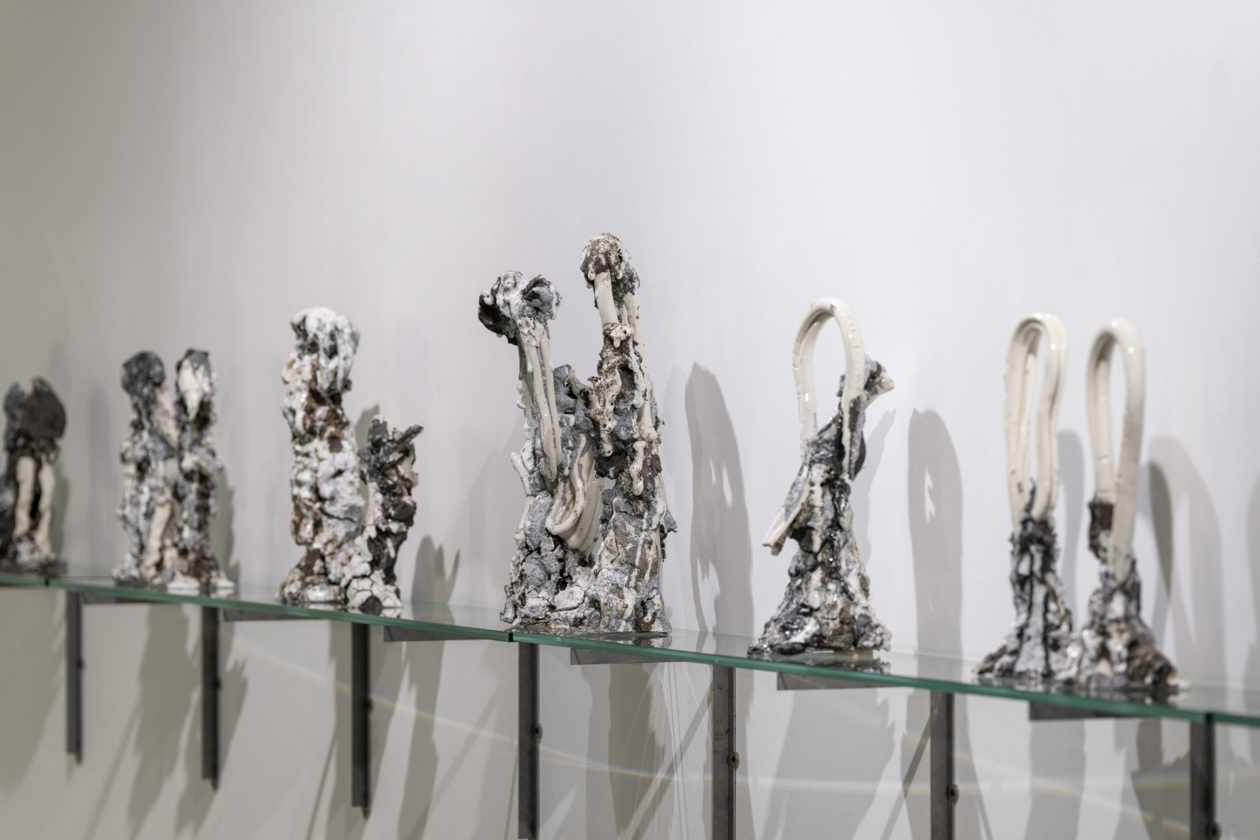 Série de Sans titres, porcelaine, grès noir et émaux, 2019.