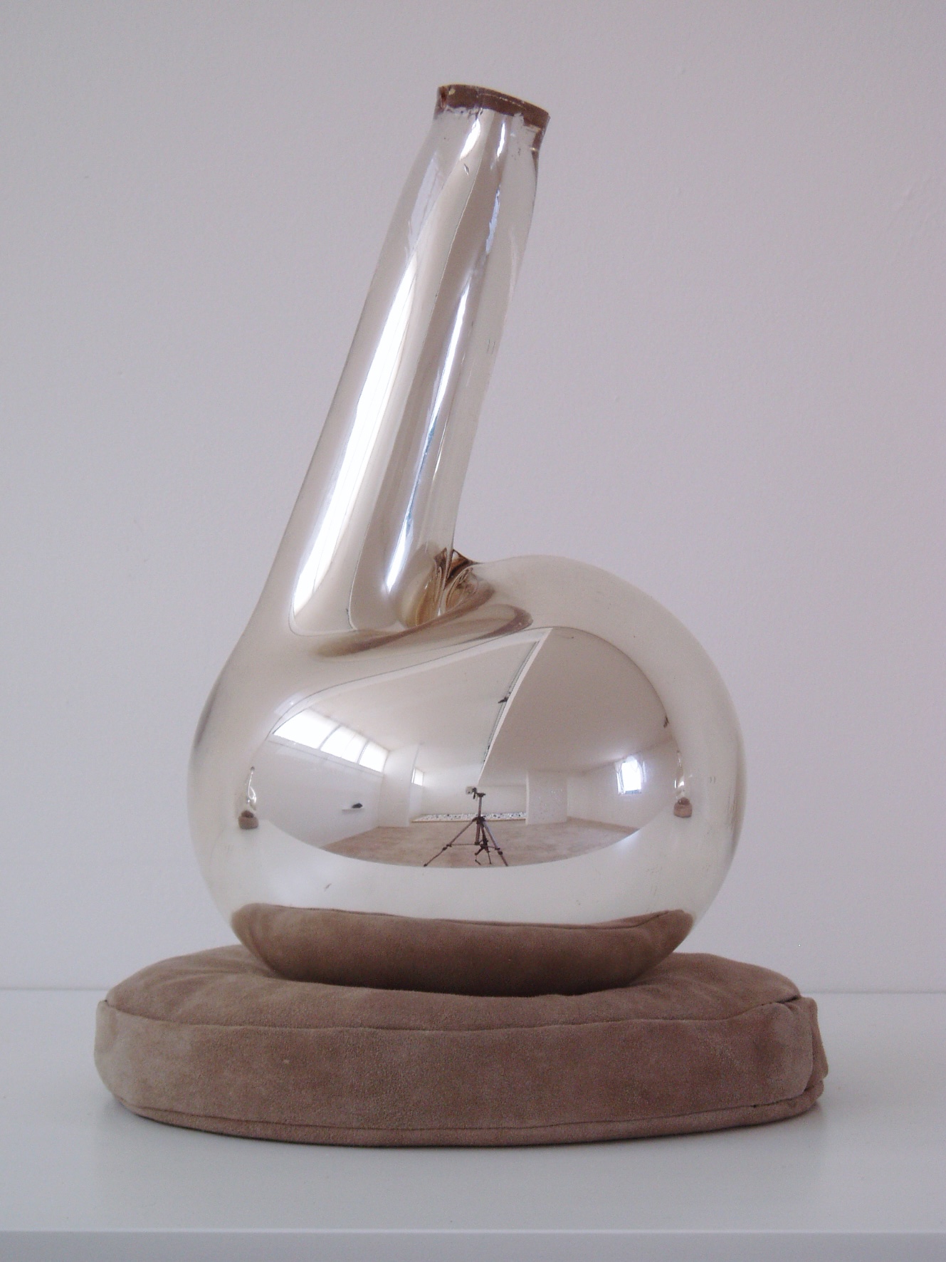 One-off Ferozabad I, verre soufflé et argenté et sac en cuir rempli de sable, 2002-2003.