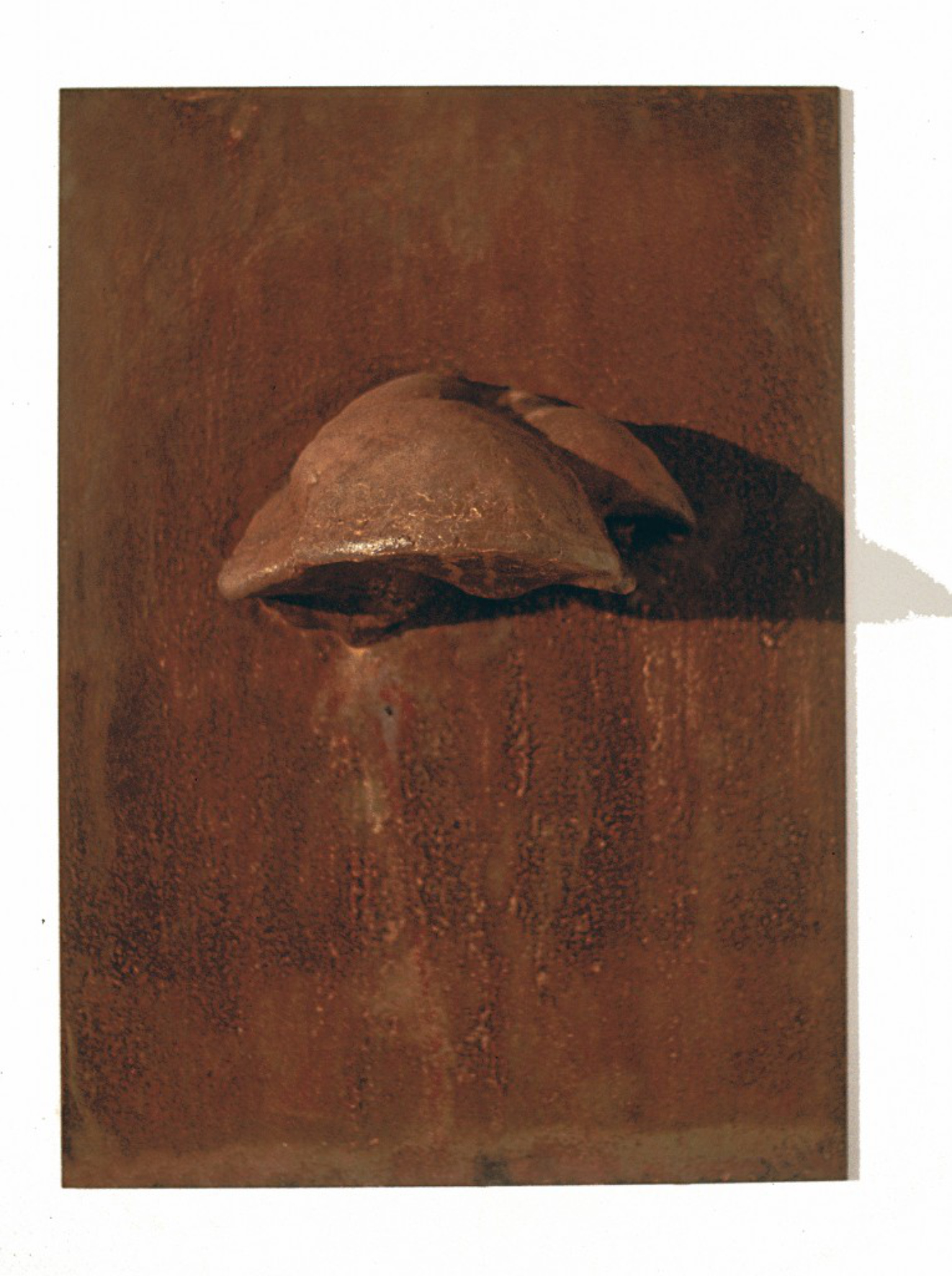 Shelf Fungus 1, fonte de fer, cire et champignons perdus sur plaque d'acier, 1994-2000.
