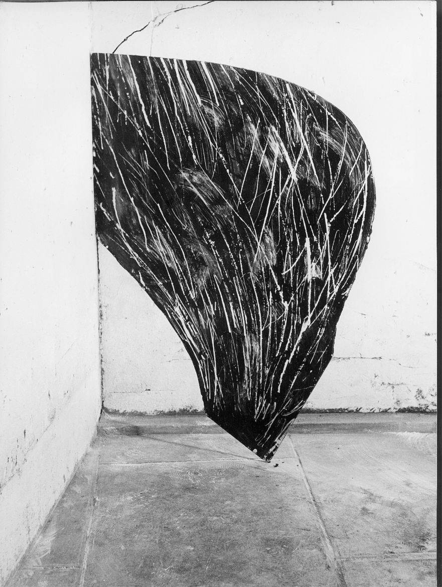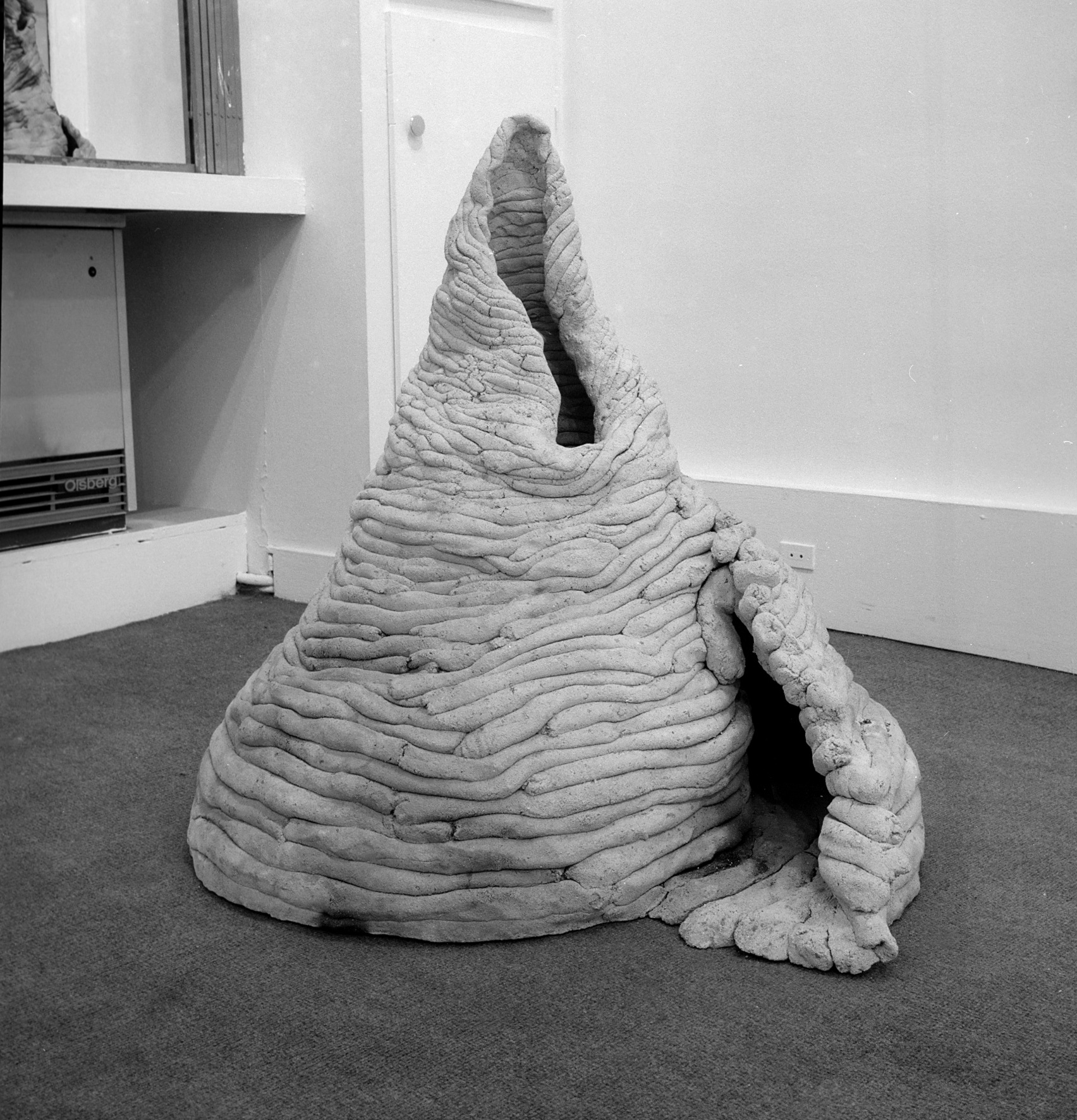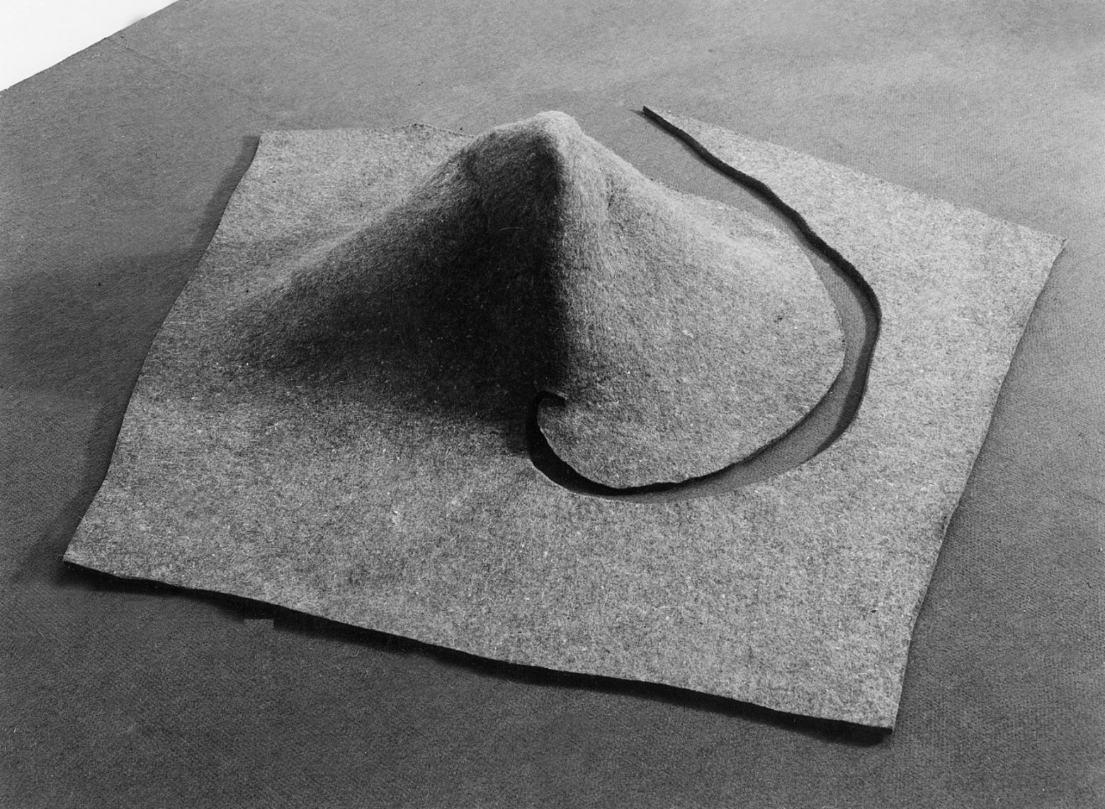 Passer sous silence, feutre gris apprêté formé à chaud, 35 x 100 x 105 cm, 1983 (œuvre détruite).