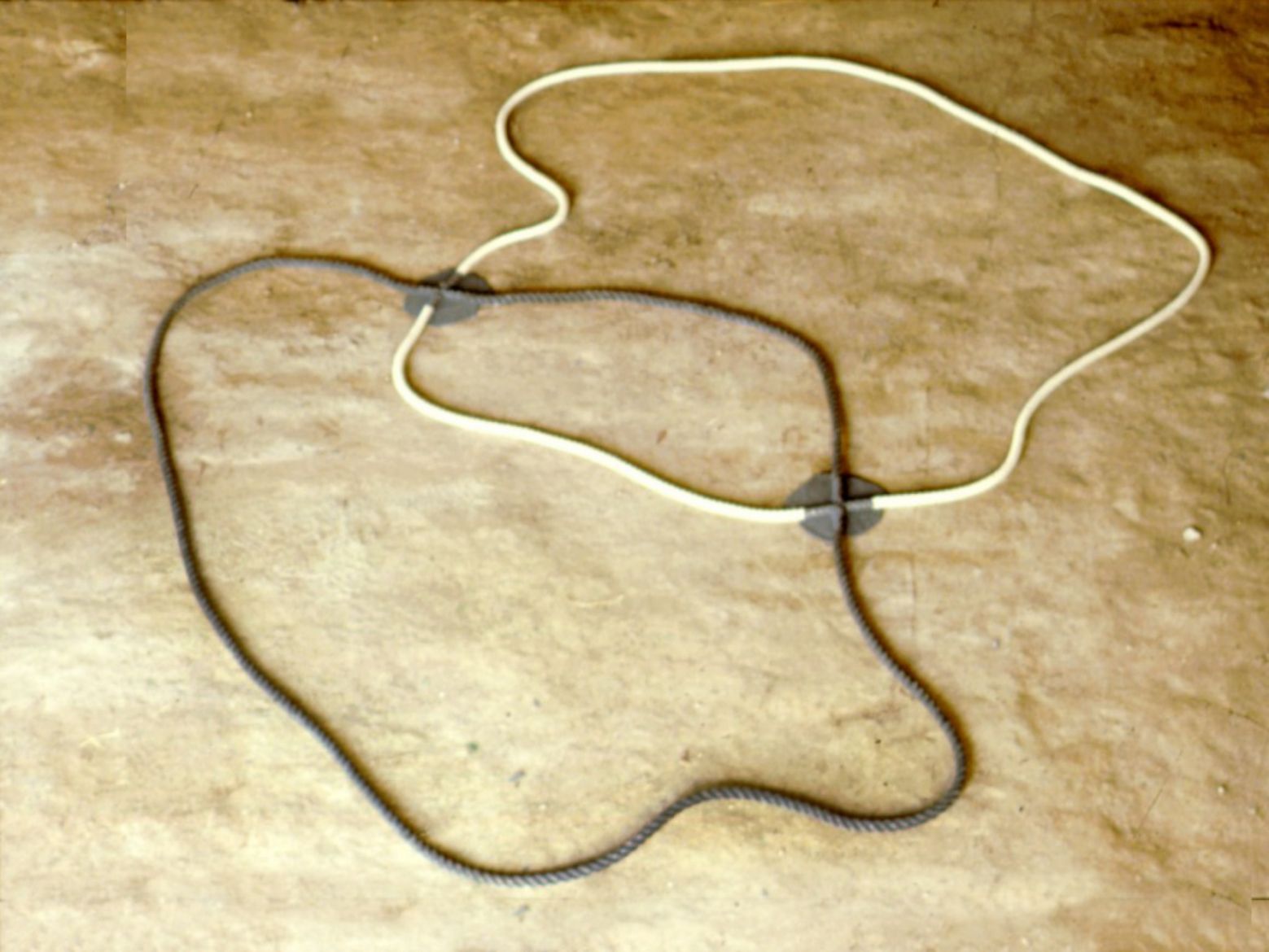 Set Theory, corde noire et blanche, résine et sable, diamètre 2,5cm, 10kg, 1978.